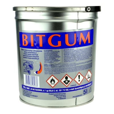 Bitgum 5L to skuteczny środek przeznaczony do antykorozyjnego zabezpieczania podwozi samochodów. Produkt tworzy trwałą i elastyczną powłokę, która chroni przed działaniem czynników erozyjno-korozyjnych. Dzięki swojej formule Bitgum 5L jest idealny do stosowania na podwoziach samochodowych, maszynach oraz konstrukcjach stalowych. Powłoka, którą tworzy, jest odporna na odpryski i uszkodzenia mechaniczne, co zapewnia długotrwałą ochronę.