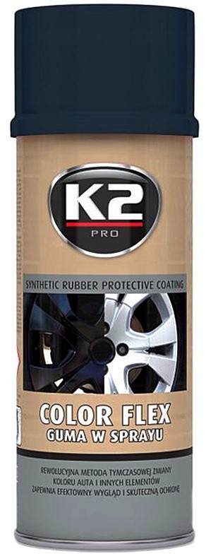 Rewolucyjna metoda tymczasowej zmiany koloru auta i innych elementów. Zapewnia efektowny wygląd i skuteczną ochronę. Zabezpiecza przed zarysowaniami, brudem, wilgocią,rozcieńczonymi kwasami, korozją, olejami, smarami. Nadaje się do nanoszenia na elementy lakierowane, felgi stalowe i aluminiowe, zderzaki, drewno, metal, szkło, tworzywa sztuczne i wiele innych. Pomalowane elementy można myć z użyciem gąbki oraz szamponu. Powłoka posiada doskonałą elastyczność, nie pęka, nie kruszy się. Wytrzymuje temperatury od -30⁰C do ponad 90⁰C. Naniesioną powłokę można łatwo usunąć. Po ręcznym usunięciu K2 Color Flex nie pozostawia żadnych śladów, a powierzchnia jest dokładnie w takim samym stanie jak w chwili nałożenia.