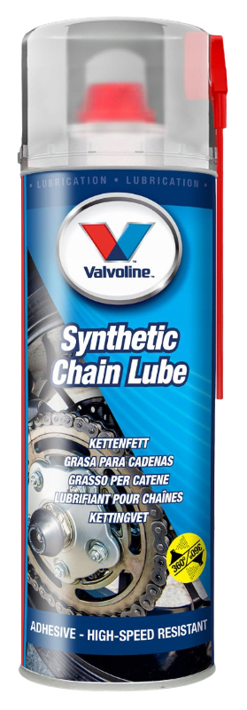 Valvoline™ Synthetic Chain Lube smar do łańcucha jest środkiem smarnym przeznaczonym do zabezpieczania łańcuchów i zębów kół łańcuchowych motocykli, rowerów, motorowerów itd. Valvoline™ Synthetic Chain Lube wyróżnia się niskim współczynnikiem tarcia, co gwarantuje minimalny opór przy jednoczesnym zachowaniu znakomitych parametrów smarowania, także przy dużych obciążeniach. Odpowiedni szczególnie do łańcuchów pracujących z dużą prędkością.