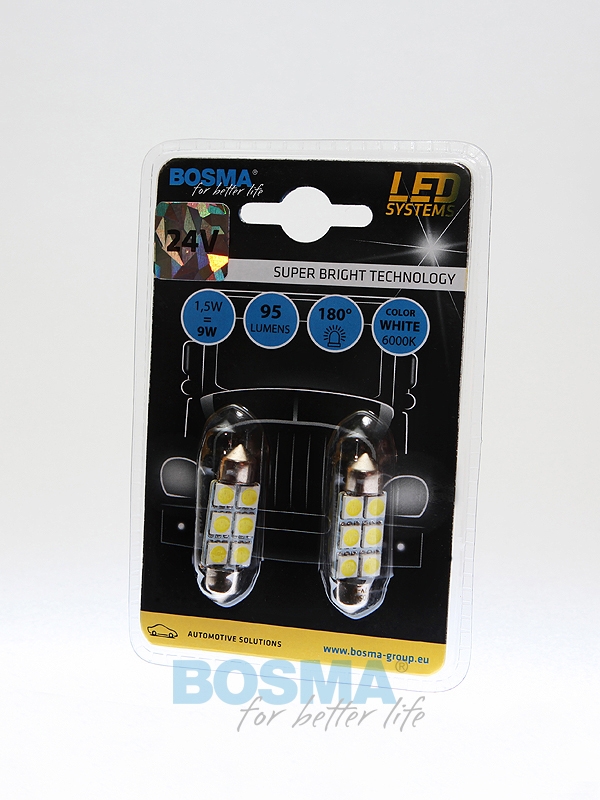 ŻARÓWKA 24V SMDx6 SV8,5 10×36 WHITE 2SZT  3826